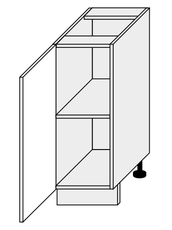 Možnost regulace výšky v případě nerovných podlah. Výška kuchyně s pracovní deskou 3,8 cm je 86 cm (nožky 10 cm) nebo 91 cm (nožky 15 cm). Sokly 10 cm na zakrytí nožek jsou součástí balení. Pokud vyberete nožky 15 cm, budeme vás kontaktovat kvůli výrobě soklů na míru.