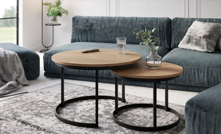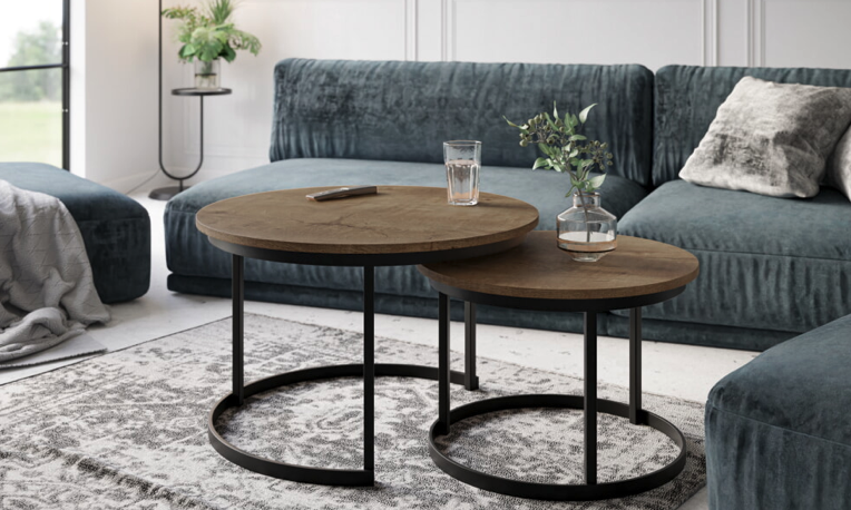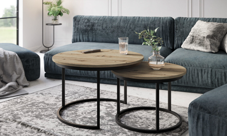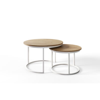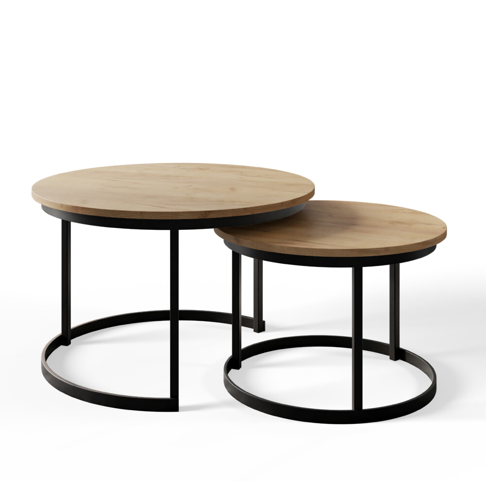 Konf. stolek LOFT 2v1 je sada dvou kulatých stolků v industriálním stylu. Kovová konstrukce a deska v dekoru Dub Craft. Praktické zasunutí jednoho pod druhý šetří místo.