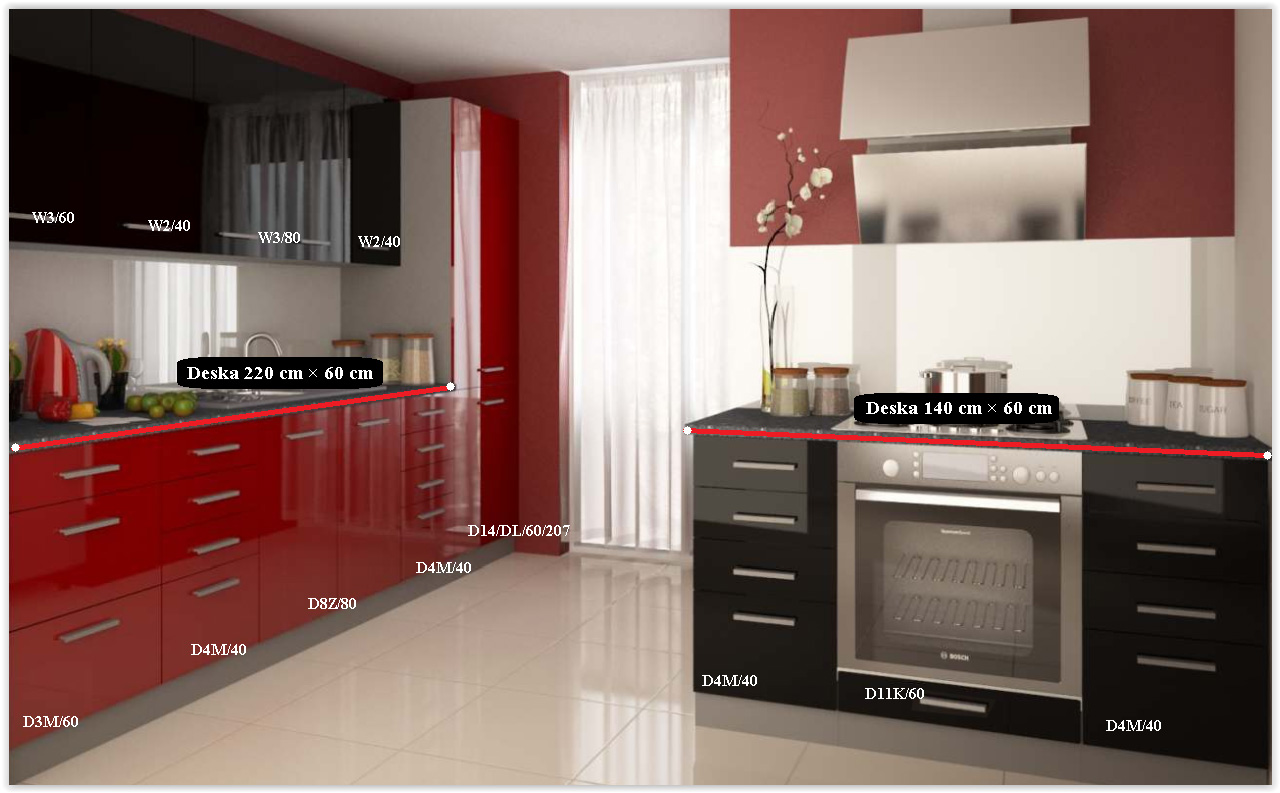 • Výška skříněk: Horní až 96 cm, Dolní - až 87 cm