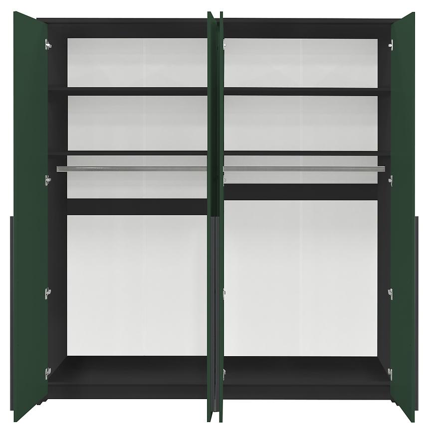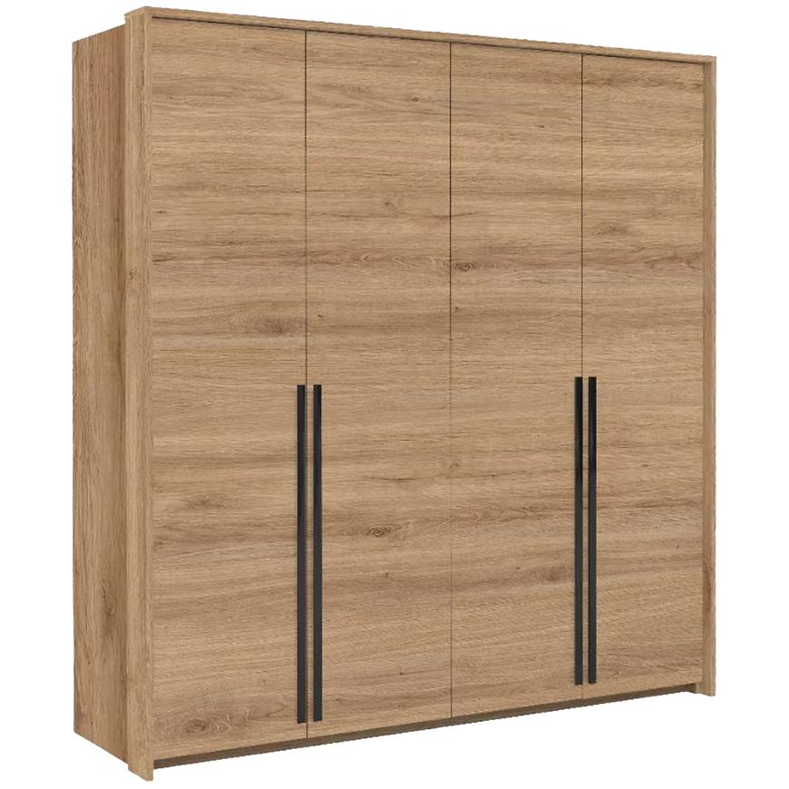Skříň Genua 210 je čtyřdveřová šatní skříň s prostorným vnitřním uspořádáním – nabízí kombinaci polic a šatních tyčí pro efektivní uložení oblečení. Moderní vzhled podtrhují vysoké úchytky a čisté linie.