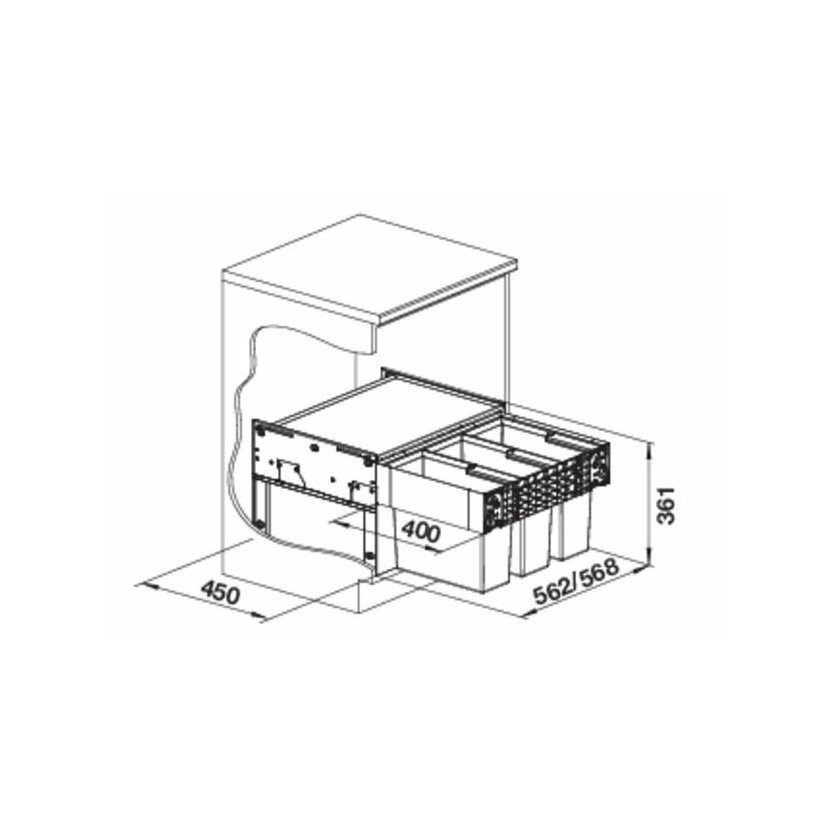 • Při plánování respektujte výšku montáže košového systému, hloubku dřezu a z toho vyplývající minimální rozměr spodní skříňky
