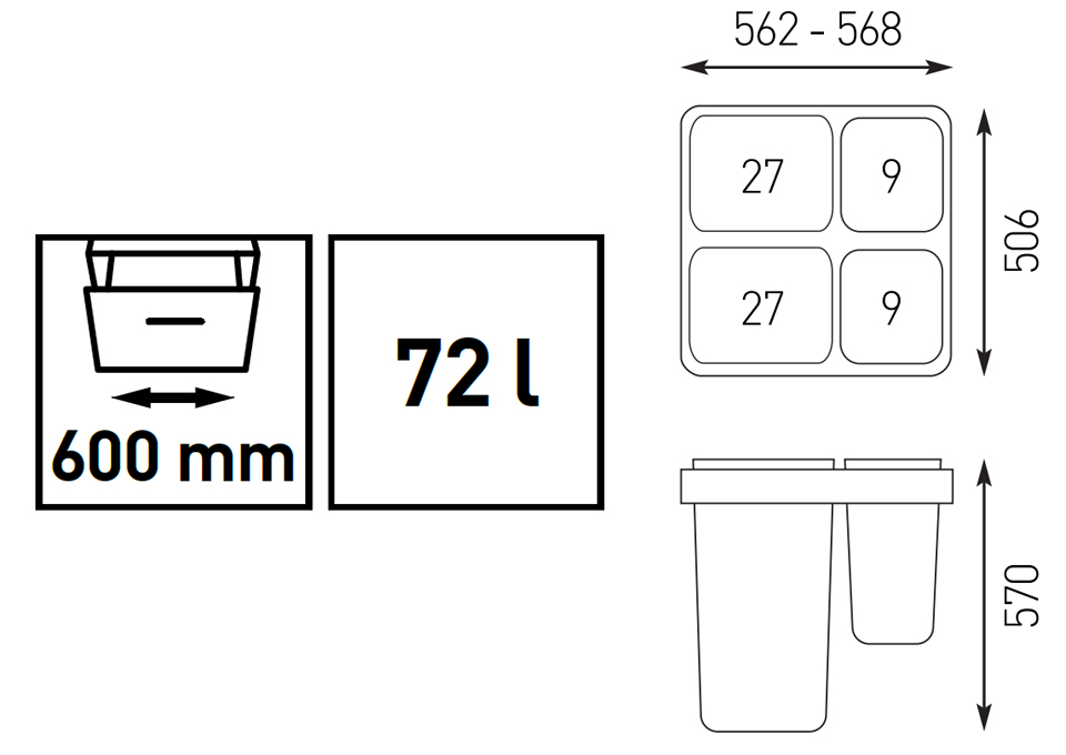 Komplet sorter StrongBins 72l včetně výsuvu StrongBox 400302