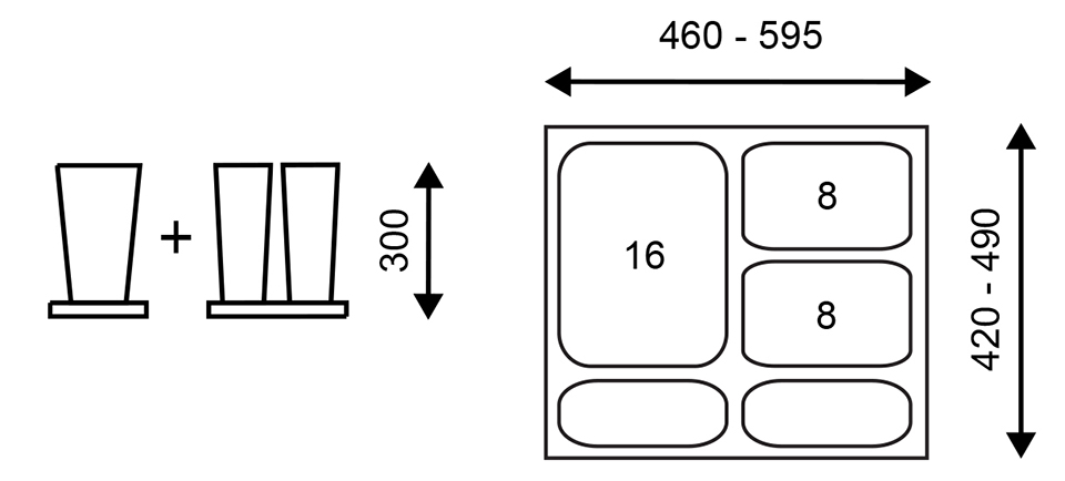 3 x nádoby s víky o objemu 1 x 16 l + 2 x 8 l