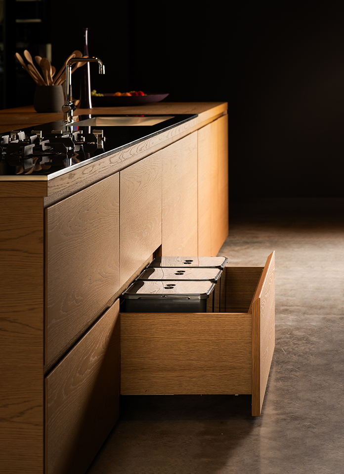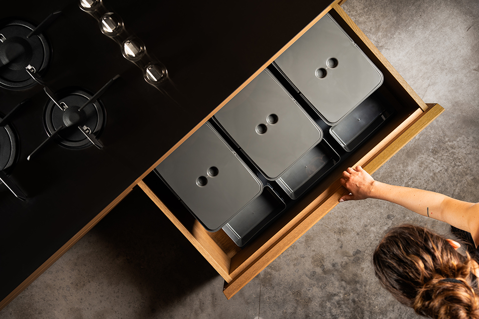 - Perforovaná spodní část základny pro ořez do šuplíku na míru, dá se upravit podle hloubky a šířky zásuvky, a to až o 5 cm (krácení).