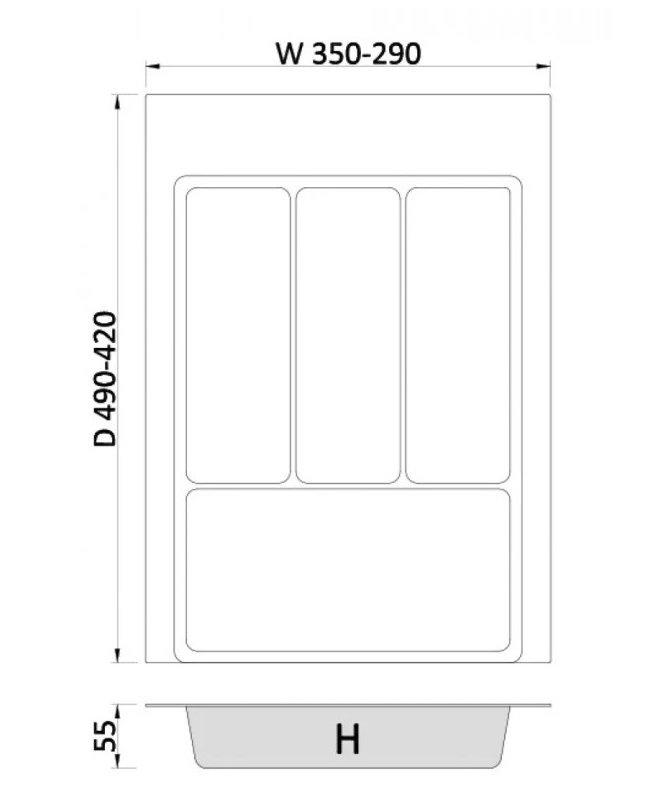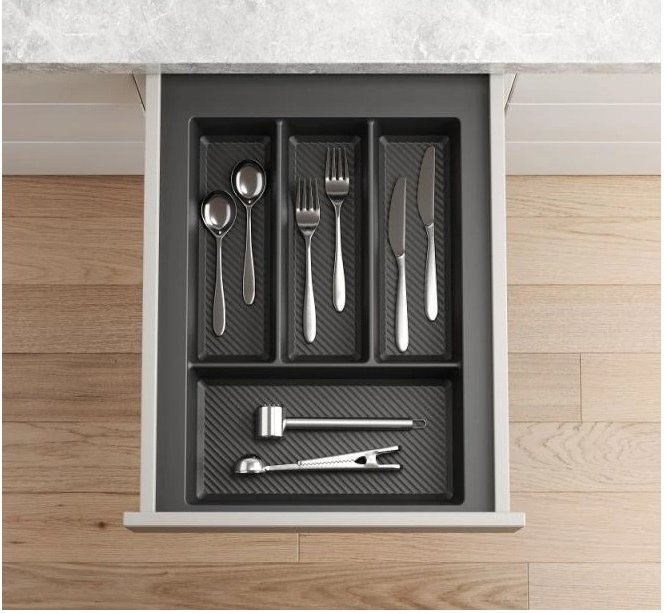 Okraje příborníku je možné jednoduše upravit na šířku i hloubku, takže přesně zapadne i do zásuvky s atypickými rozměry.