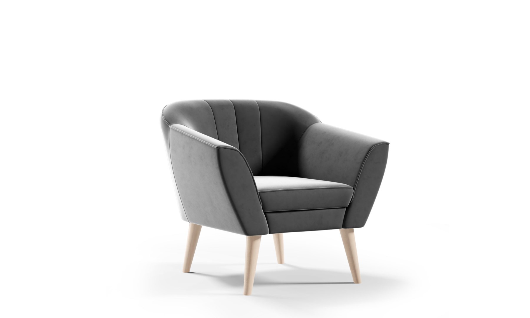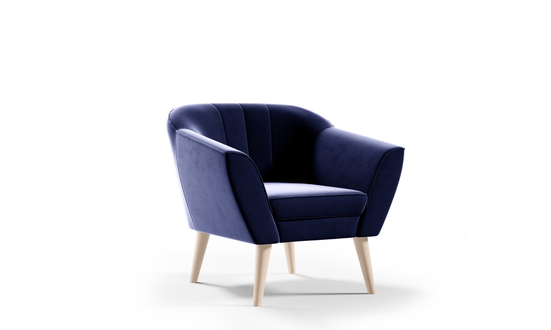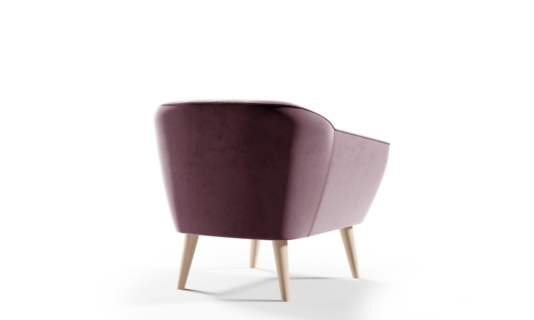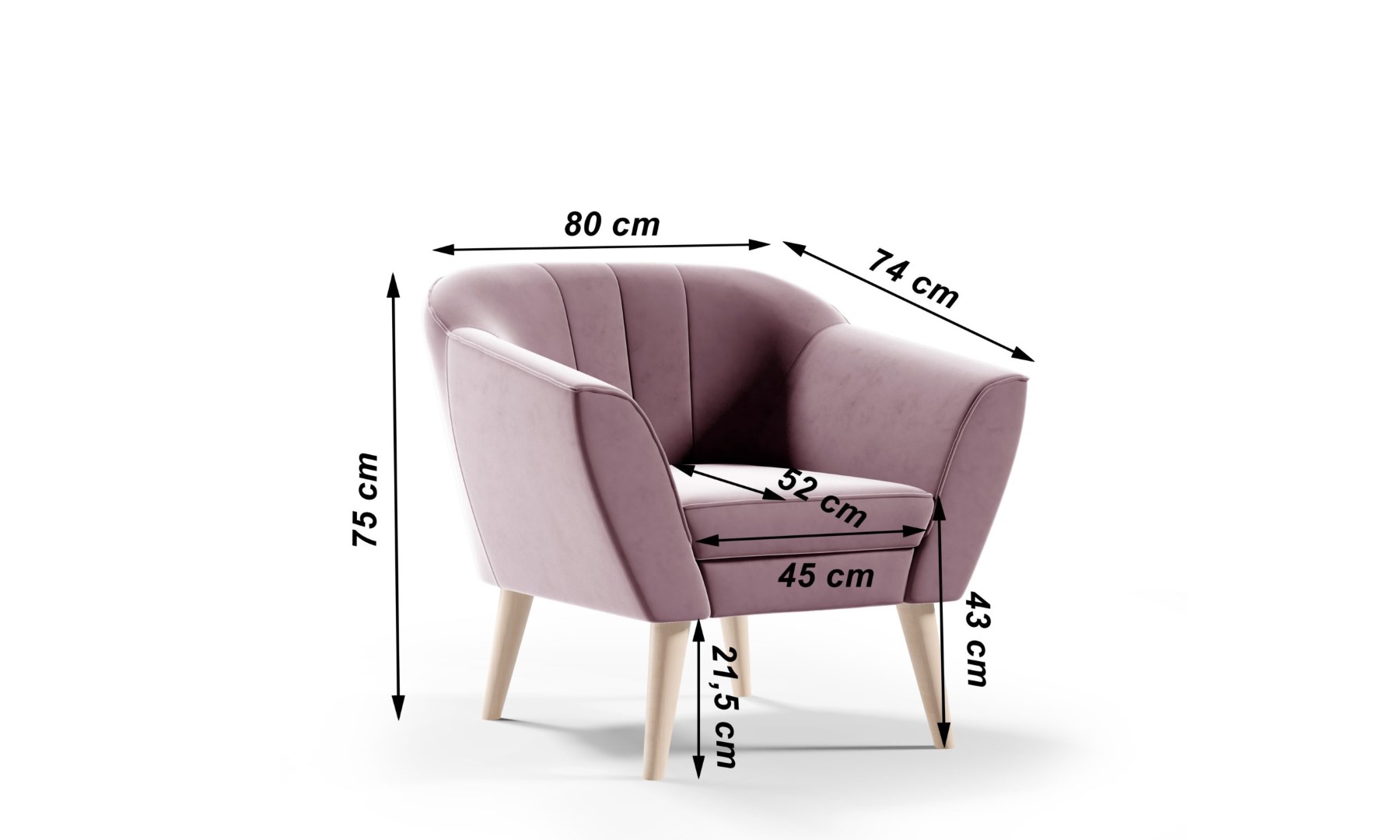 Křeslo KAJLA je stylový doplněk v moderním skandinávském designu. Nabízí pohodlné sezení s čalouněným sedákem, oblými tvary a opěrkou zdobenou knoflíky. Díky vyšším dřevěným nožkám působí lehce a vzdušně, skvěle se hodí jak do obývacího pokoje, tak do kavárny či kanceláře.
