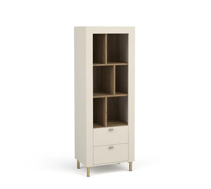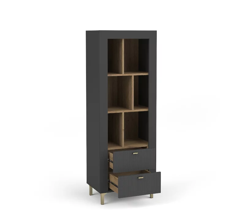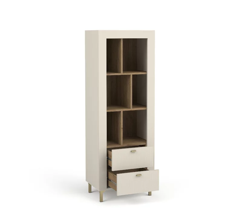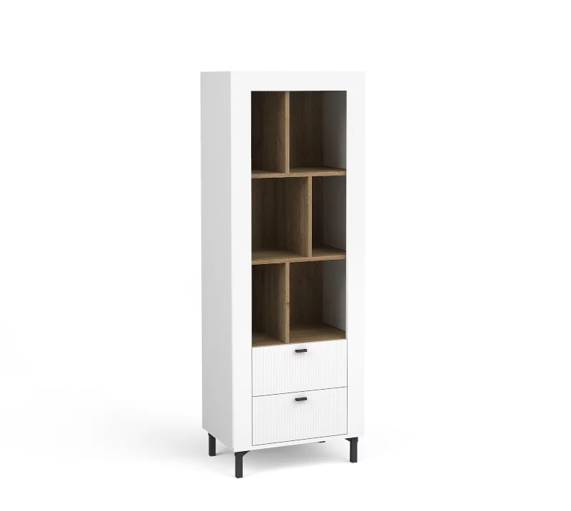 Regál Mossa MO4 disponuje otevřenými policemi, pro vystavení Vašich dekorací a dvěma zásuvkami.
