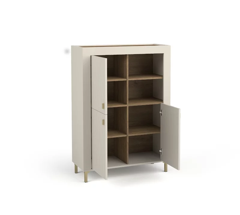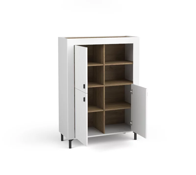 Komoda Mossa MO5 otevřenými i skrytými policemi pro vystavení Vašich dekorací nebo uložení všeho, co právě potřebujete po ruce.