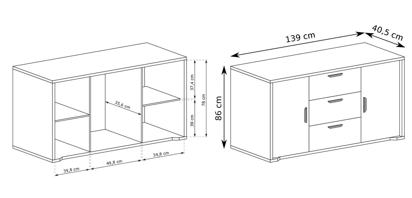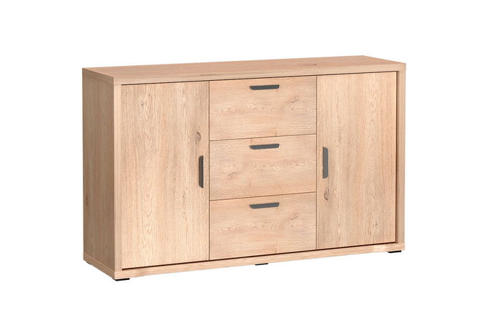 Komoda G-2 je praktickým a elegantním doplňkem do každého interiéru. Vyrobena z kvalitního materiálu s přírodním dekorem. Její jednoduchý a moderní design zajišťuje, že se snadno hodí do různých typů místností.