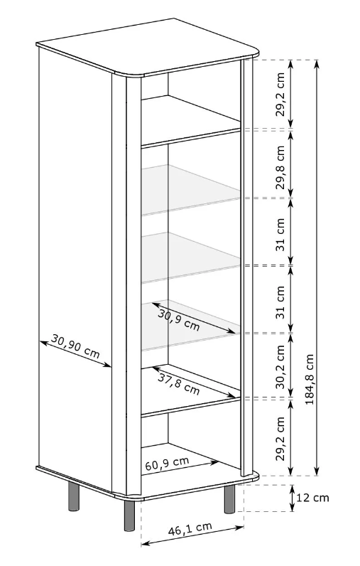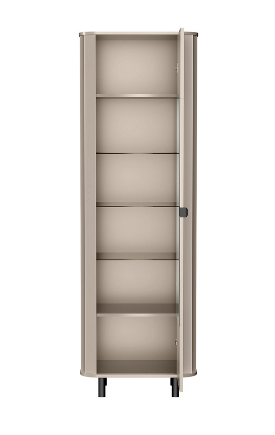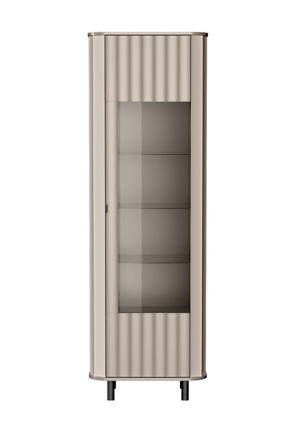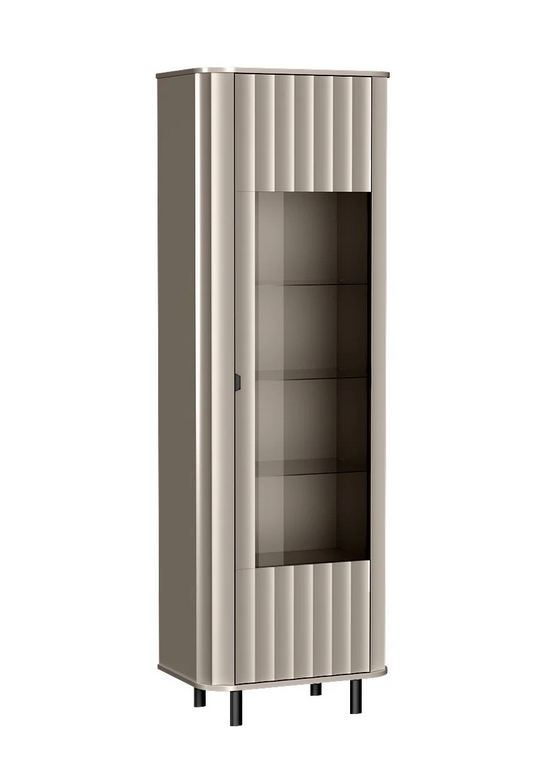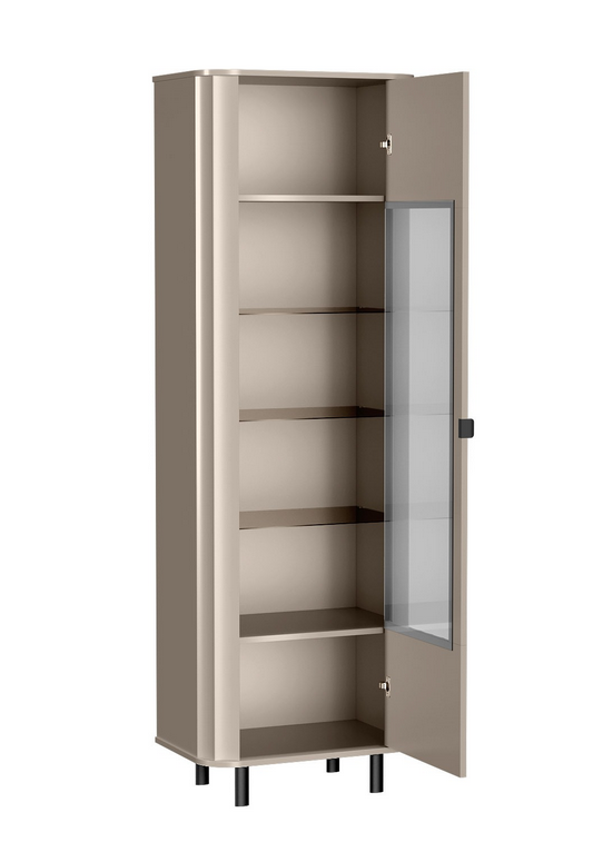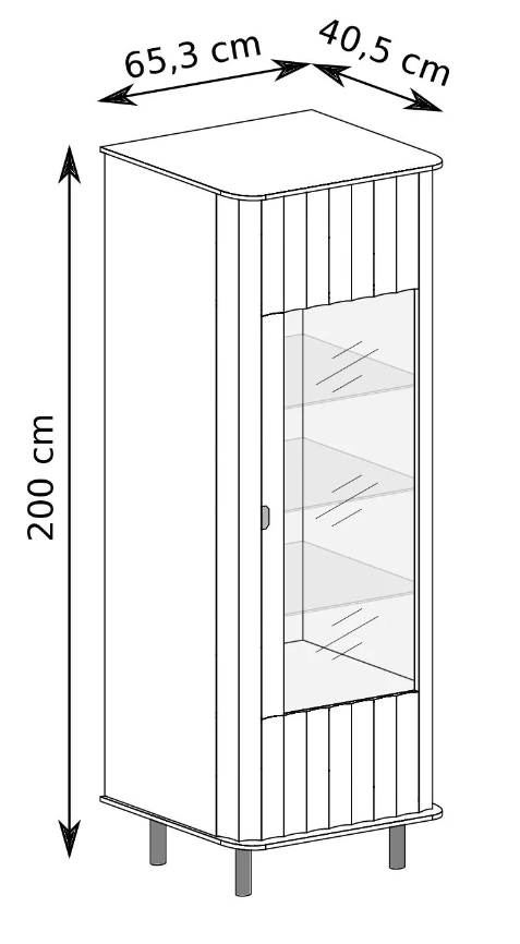 Vitrína NO-4 je praktickým a elegantním doplňkem do každého interiéru. Vyrobena z kvalitního materiálu s přírodním dekorem. Její jednoduchý a moderní design zajišťuje, že se snadno hodí do různých typů místností.