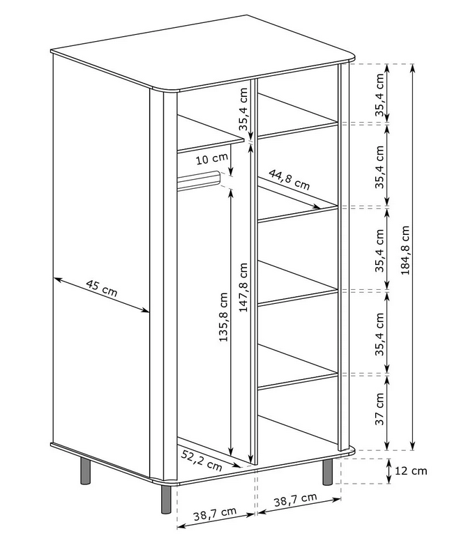Skříň NO-8 je praktickým a elegantním doplňkem do každého interiéru. Vyrobena z kvalitního materiálu s přírodním dekorem. Její jednoduchý a moderní design zajišťuje, že se snadno hodí do různých typů místností.