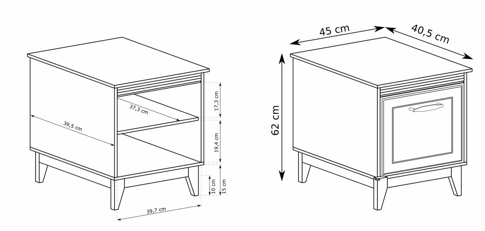 Noční stolek W-11 je praktickým a elegantním doplňkem do každého interiéru. Vyrobena z kvalitního materiálu s přírodním dekorem. Její jednoduchý a moderní design zajišťuje, že se snadno hodí do různých typů místností.