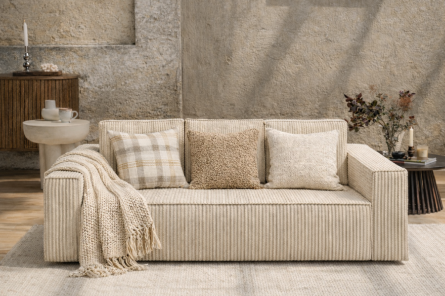 Pohovka Corda s příjemným manchestrovým potahem, úložným prostorem a rozkládací funkcí pro spaní. Ideální pro obývací pokoj.