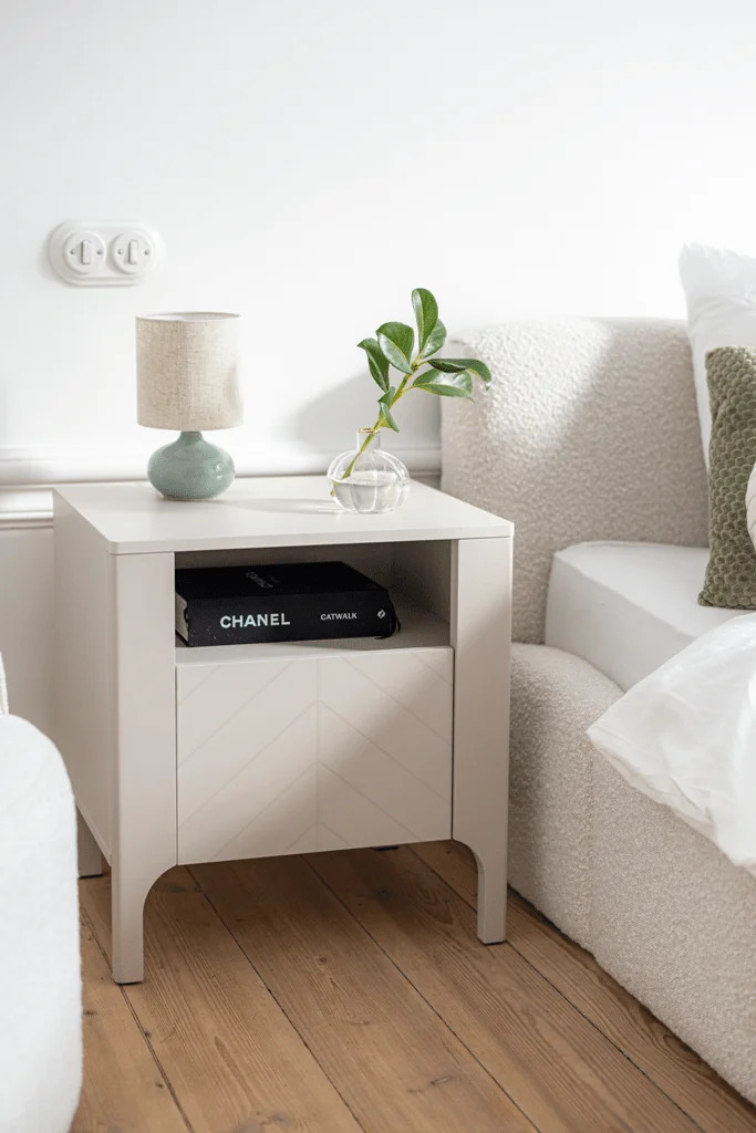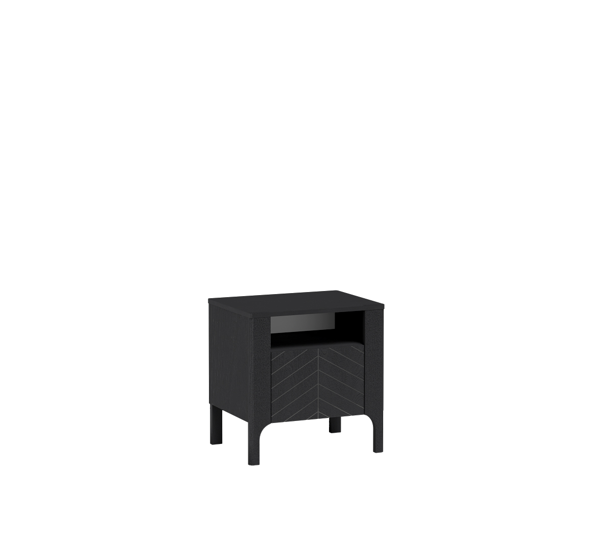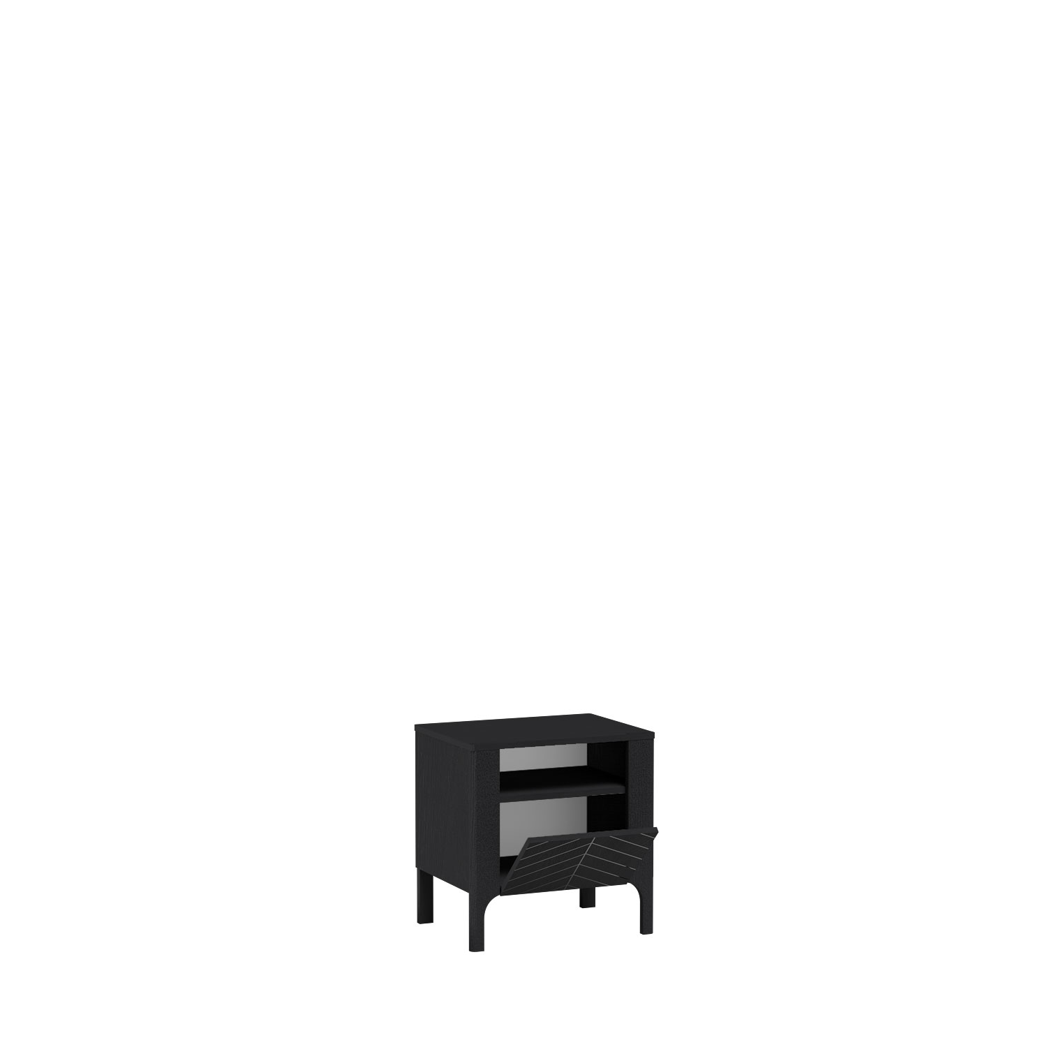 Noční stolek MALMI kombinuje moderní design s praktickým využitím. Stylové čelo se vzorem rybí kosti přitahuje pohled, zatímco prostorná polička a otevřený výklenek nabízejí praktické místo pro vše, co potřebujete mít po ruce. Pevná konstrukce a matná povrchová úprava zajistí, že stolek skvěle doplní každý interiér a stane se nejen funkční, ale i designovou ikonou vaší ložnice.