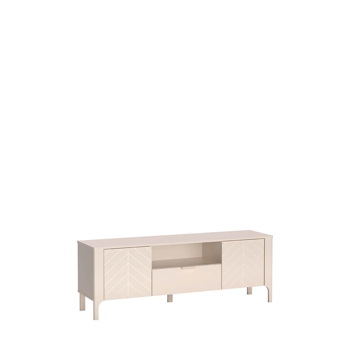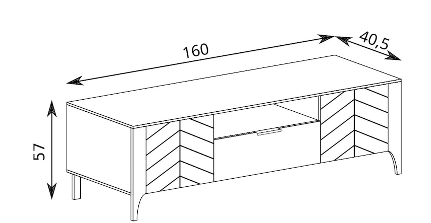 Televizní stolek MALMI spojuje moderní design s promyšlenou funkčností. Čela se stylovým vzorem rybí kosti dodávají nábytku nadčasový charakter, zatímco dvě uzamykatelné skříňky, zásuvka a otevřený prostor poskytují dostatek místa pro příslušenství i TV techniku. Pevné nohy zajišťují stabilitu a odolné materiály dlouhou životnost. Elegantní provedení z něj dělá výrazný i praktický prvek každého obývacího pokoje.