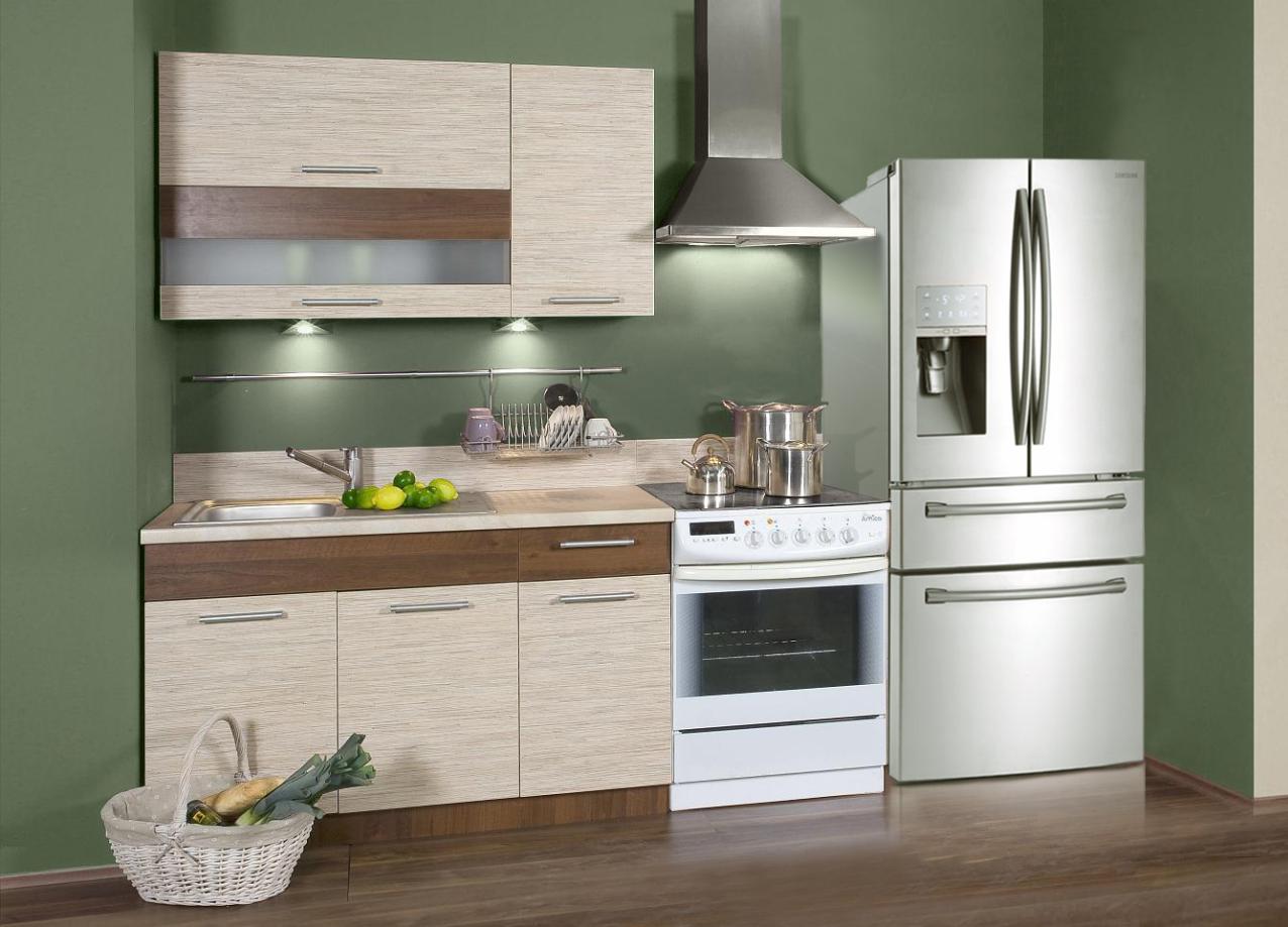 Skříňky se dodávají v demontu a můžete je seřadit libovolně, nemusíte se držet pořadí na fotografii. Pokud vám složení sestavy nevyhovuje, můžete si poskládat vlastní kuchyni na míru z horních a dolních skříněk.