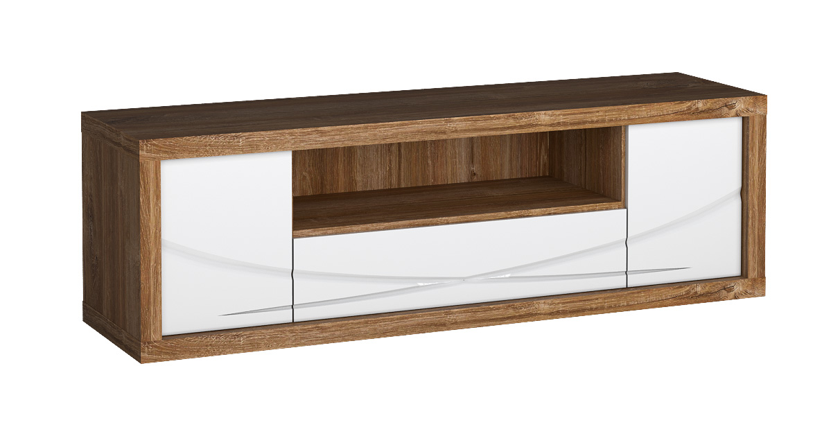 Pro moderní nábytek Paris je typická kombinace dekoru dřeva a bílých lesklých dvířek s vyfrézovanými liniemi. Díky tomu působí celá série originálně, s lehkým futuristickým nádechem. Pokud pro ni zvolíte i LED osvětlení, podtrhnete její nevšední design. Vybírejte policové skříně, konferenční stolky i zrcadlo do předsíně. Dvířka se otevírají systémem push to open, takže nepotřebujete žádné úchytky.
