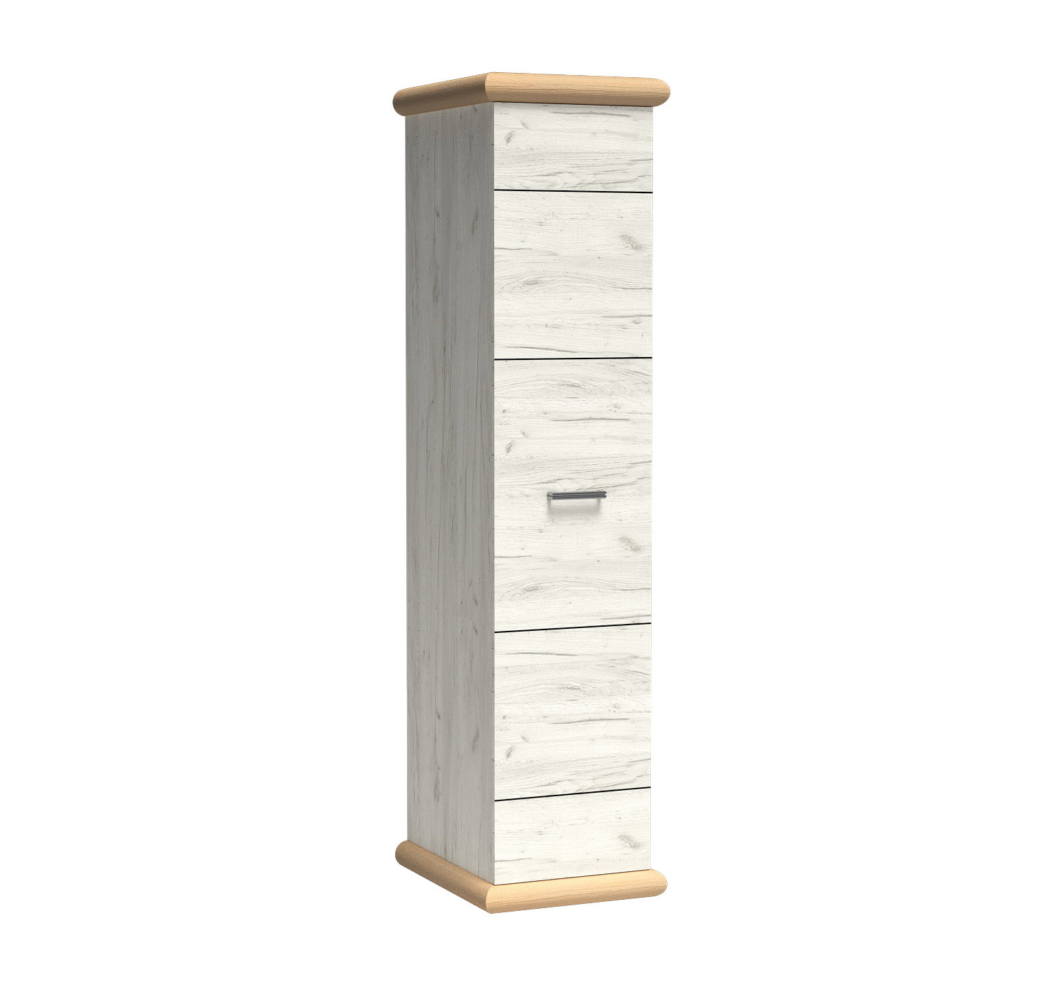 Uvnitř skříně naleznete šatní tyč a jednu polici. Směr otevírání dvířek určíte při montáži (L/P).