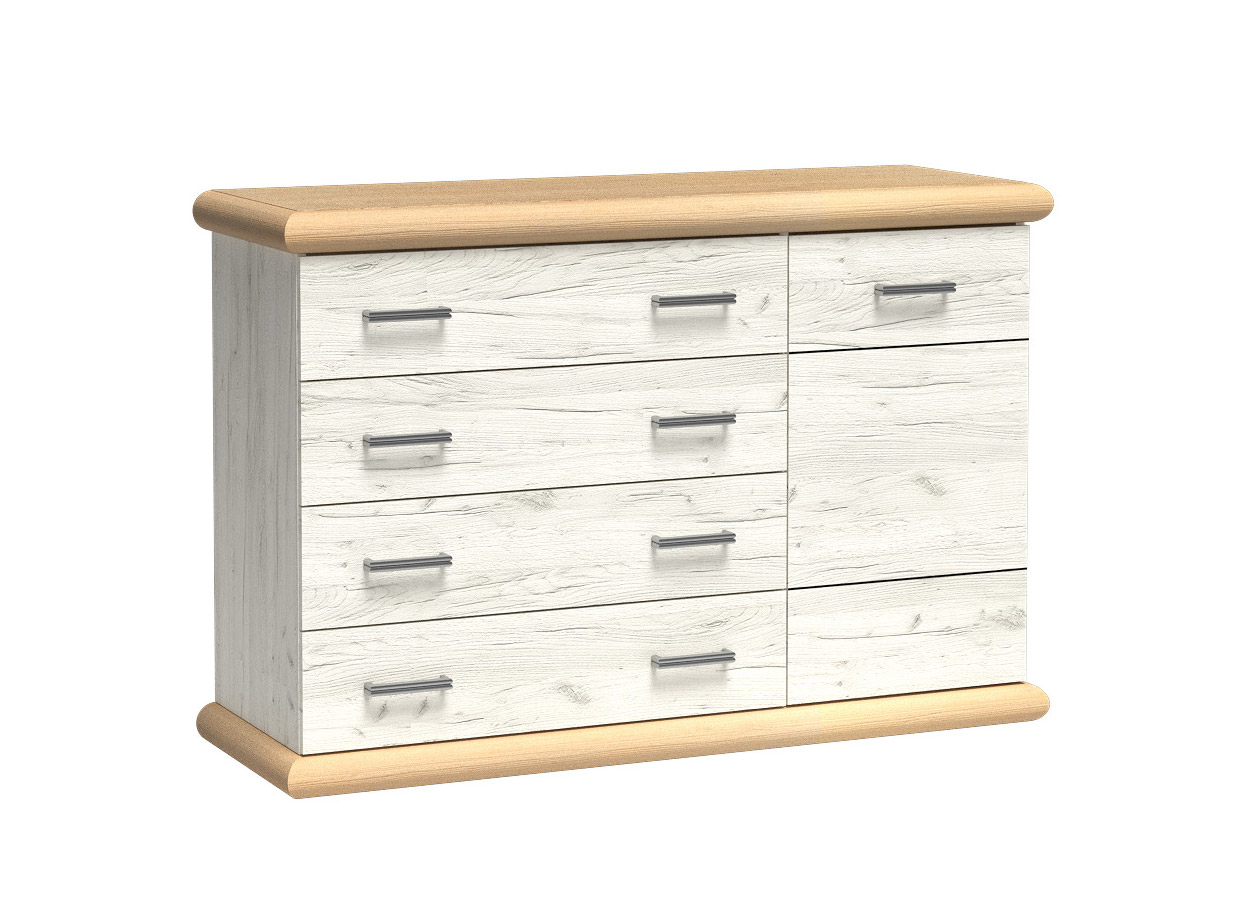 Nábytek této série je vyrobený z laminovaných desek, má ABS hrany a záda jsou vyplněná HDF deskou. Má plastové úchytky s roztečí 128 mm a vitríny jsou vyplněné tvrzeným sklem.