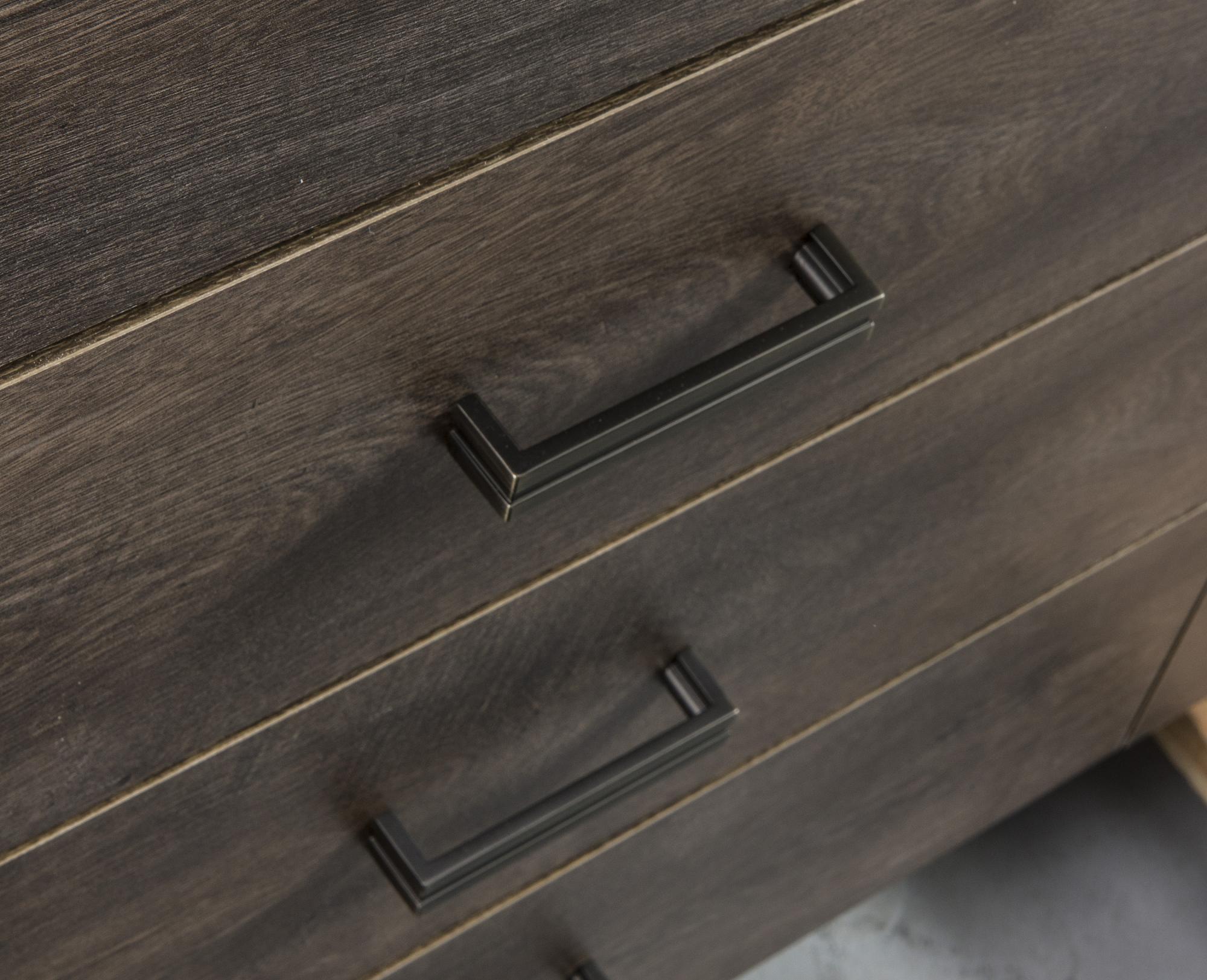 Série je vyrobená z lamino desek o 16 a 48 mm a ABS hran, záda HDF. Doplněná je o kovové úchytky s roztečí 96 mm. Vitríny mají výplň z tvrzeného skla. Vybírat můžete ze tří barev provedení - světlý nebo tmavý jasan a bílý dub Craft.