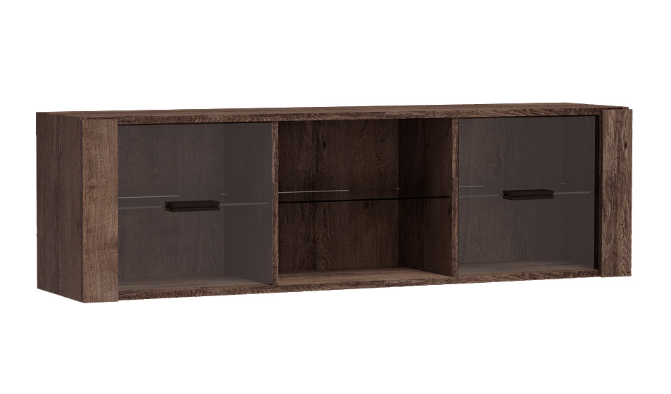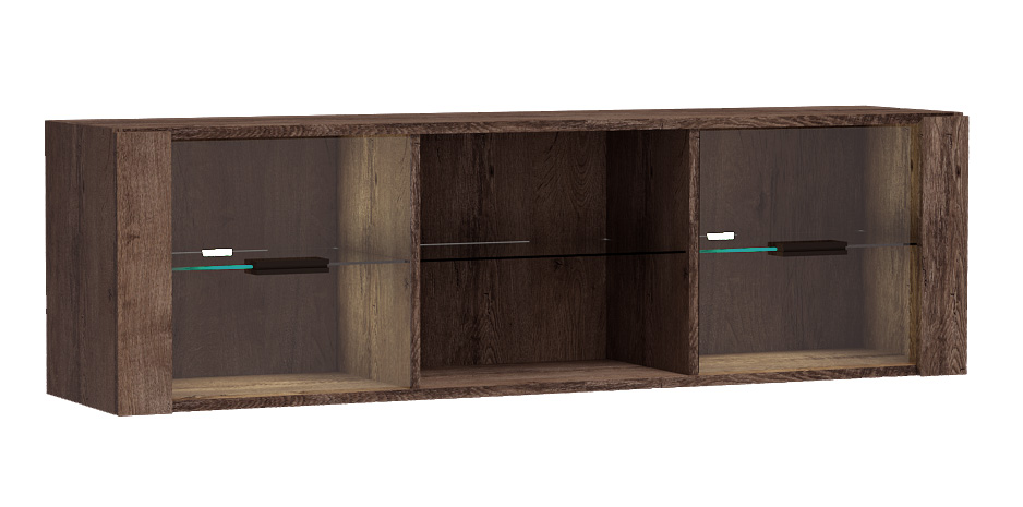 Moderní nábytek ve vyhledávaném dekoru dřeva. V robustním provedení, které vás zaujme hned na první pohled. Dekorativní čelní dubovou desku můžete u vitríny doplnit LED osvětlením. Ta zvýrazní její linii a nábytek pak působí velmi stylově.