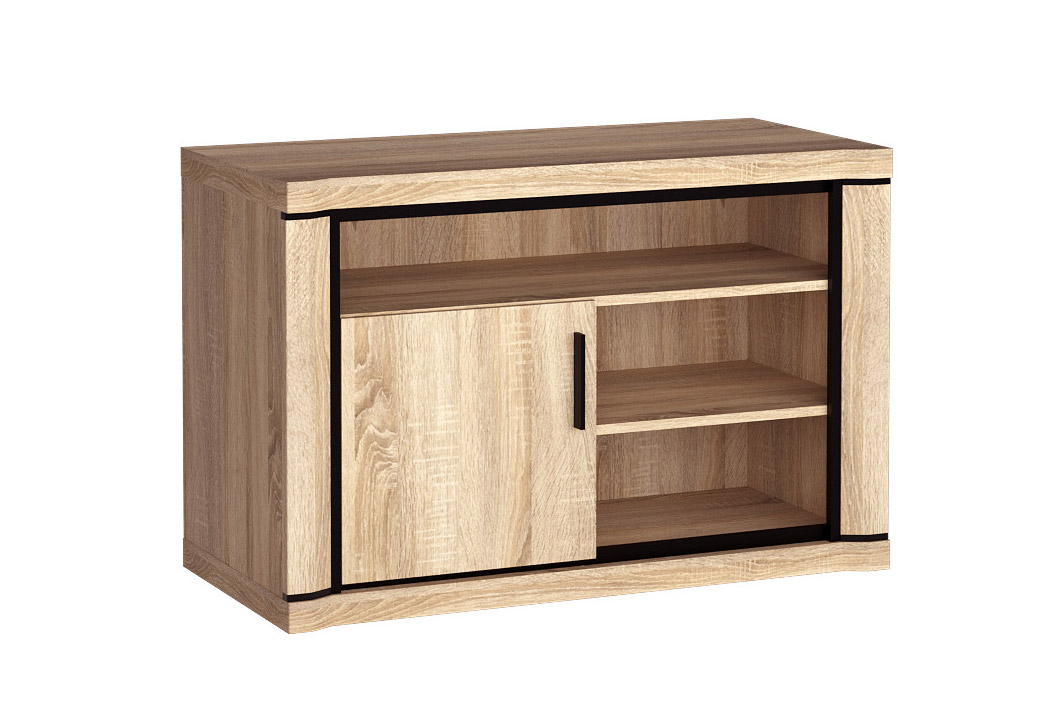 Stolek ve tvaru kvádru se skvěle hodí k televizi. Obsahuje několik polic a zavírací skříňku.