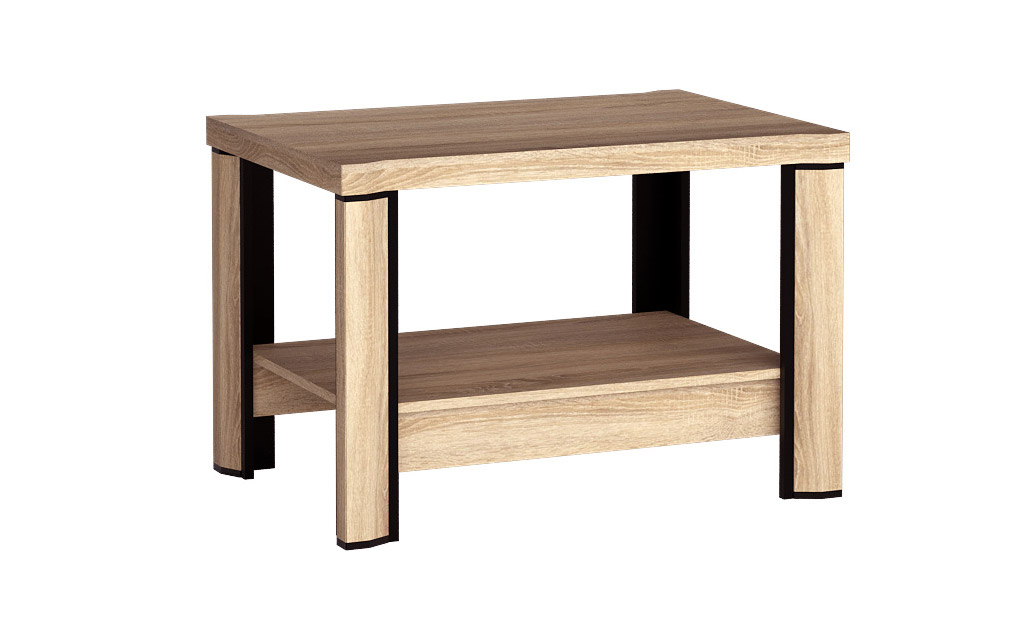Praktický konferenční stolek s mohutnou horní deskou a policí pro odkládání drobností.