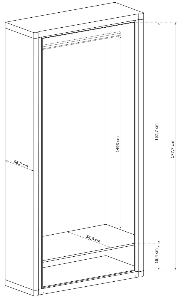 Samozřejmostí jsou kvalitní materiály, ABS hrany a kování. Záda jsou vyplněné HDF deskou.