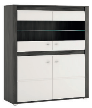 Nábytkovou sérii Sevilla definuje čistá forma a elegantní křivky. Tělo je v barvě norské černé pinie, čelní plochy v bílém lesklém provedení. Dvířka doplňuje minimalistická chromovaná kovová rukojeť. Jednotlivé komponenty dělají z této řady ztělesnění moderního nábytku. Vybírejte šatní skříně, manželské postele, prosklené vitríny a další vybavení.