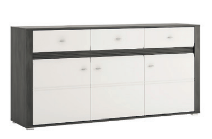 Nábytkovou sérii Sevilla definuje čistá forma a elegantní křivky. Tělo je v barvě norské černé pinie, čelní plochy v bílém lesklém provedení. Dvířka doplňuje minimalistická chromovaná kovová rukojeť. Jednotlivé komponenty dělají z této řady ztělesnění moderního nábytku. Vybírejte šatní skříně, manželské postele, prosklené vitríny a další vybavení.
