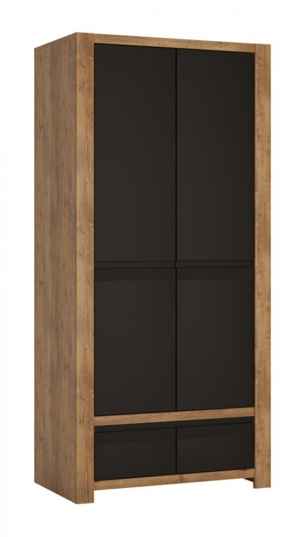 Temný a minimalistický nábytek má svoje fanoušky. Jste jedním z nich? Budete nadšení z hlubokého odstínu dubu Lefkas v kombinaci s černou matnou přední stranou. Praktickým řešením je použití dekorativní drážky v místě rukojeti, díky které se vyhnete nevzhledným otiskům prstů na skříních a vitrínách.