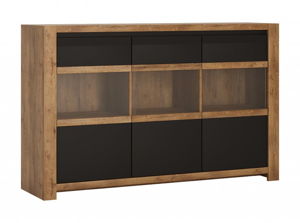 Temný a minimalistický nábytek má svoje fanoušky. Jste jedním z nich? Budete nadšení z hlubokého odstínu dubu Lefkas v kombinaci s černou matnou přední stranou. Praktickým řešením je použití dekorativní drážky v místě rukojeti, díky které se vyhnete nevzhledným otiskům prstů na skříních a vitrínách.