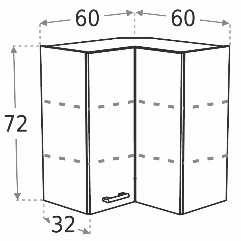 Korpusy jsou vyrobeny z kvalitní LTD desky o síle 16 mm. Police s nosností 15 Kg jsou důmyslně zabezpečeny proti samovolnému vysunutí. Záda jsou ze sololitu. Součástí balení jsou praktické hliníkové úchytky. Dvířka jsou vyrobeny z LTD desky o síle 16 mm s 2mm ABS hranou v barvě dvířek, která je pevně připevněna speciálním, vodě odolným PUR lepidlem.