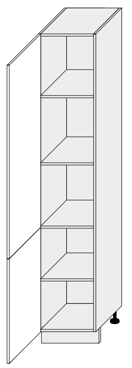 Možnost regulace výšky v případě nerovných podlah. Výška kuchyně s pracovní deskou 3,8 cm je 86 cm (nožky 10 cm) nebo 91 cm (nožky 15 cm). Sokly 10 cm na zakrytí nožek jsou součástí balení. Pokud vyberete nožky 15 cm, budeme vás kontaktovat kvůli výrobě soklů na míru.