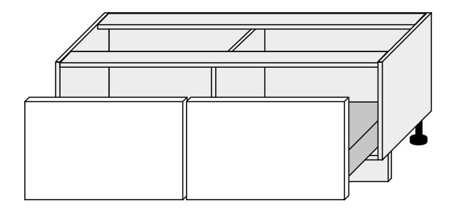 Korpusy skříněk jsou vyrobené z kvalitní LTD desky o tloušťce 18 mm ( s ABS 0,5 mm). Záda jsou z bílého sololitu a vnitřní police mají nosnost 15-25 kg. Kování BLUM nebo Hettich s doživotní zárukou (úchytky, kování a sokly jsou v ceně) a všechna dvířka i zásuvky disponují systémem tlumeného dovírání (kromě zásuvek Blum METABOX). Skříňky stojí na nastavitelných nožkách o výšce 10 nebo 15 cm.