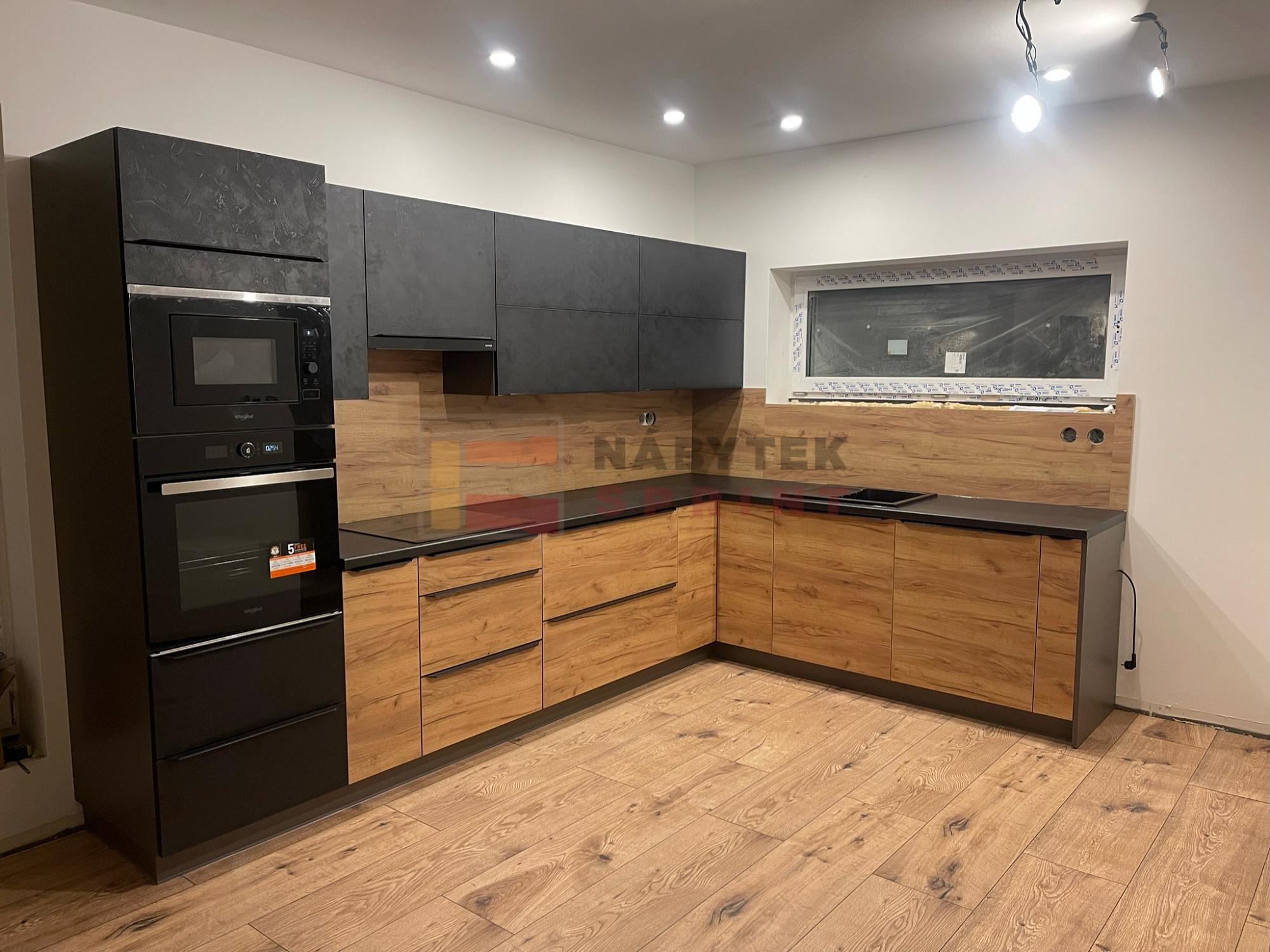 Korpusy skříněk jsou vyrobené z kvalitní LTD desky (18 mm, ABS 0,5 mm). Záda jsou z bílého sololitu a ve skříňkách jsou police s nosností 15 kg. Dvířka jsou opatřená kováním Hettich nebo Aventos (úchytky a kování jsou v ceně), na které se vztahuje doživotní záruka. Všechny skříňky disponují systémem tlumeného dovírání.