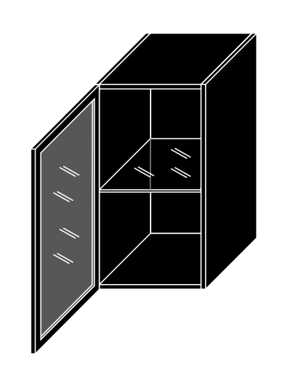 Designová kuchyňská skříňka Black ALU, černé korpusy 18 mm, čiré sklo a kovové úchytky. Univerzální použití ke každému typu kuchyně.
