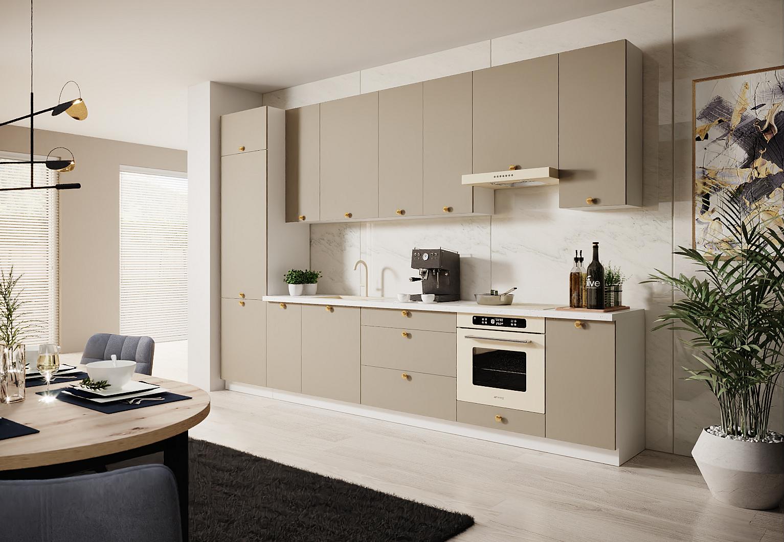 Kuchyňský program Essen je skutečně výjimečný. Akrylová dvířka jsou vysoce odolná proti poškrábání. Vybrané dekory dvířek dodají kuchyni vysoký lesk, kterým navozují takzvaný “skleněný efekt”. Za pozornost stojí i precizní antibakteriální povrchová úprava, která ve svém využitém materiálu skrývá ionty stříbra. Zvolte si jednotlivé komponenty této moderní kuchyně podle vašich představ a vytvořte si klidně rohovou kuchyňskou linku.