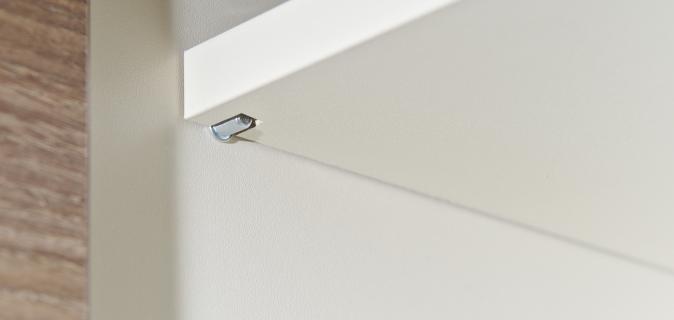 Police v horních kuchyňských skříňkách DUO Police v horních skříňkách jsou zabezpečeny proti vysunutí