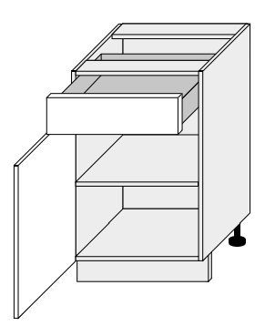Možnost regulace výšky v případě nerovných podlah. Výška kuchyně s pracovní deskou 3,8 cm je 86 cm (nožky 10 cm) nebo 91 cm (nožky 15 cm). Sokly 10 cm na zakrytí nožek jsou součástí balení. Pokud vyberete nožky 15 cm, budeme vás kontaktovat kvůli výrobě soklů na míru.