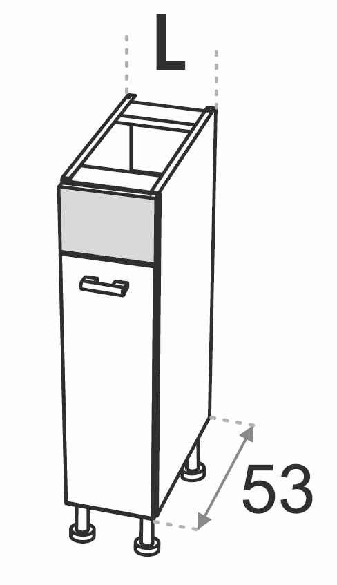 Výška nezahrnuje nožky (10 nebo 15 cm) a pracovní desku.