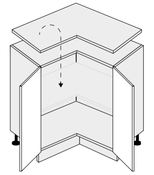 - Výška kuchyně s pracovní deskou 3,8 cm je 86 cm nebo 91 cm podle výšky nožek