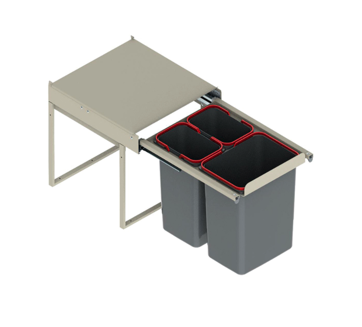 Univerzální koš do skříněk o šířce 45 cm s maximálně jednou zásuvkou nahoře.  Objem: 9 l, 9 l, 20 l