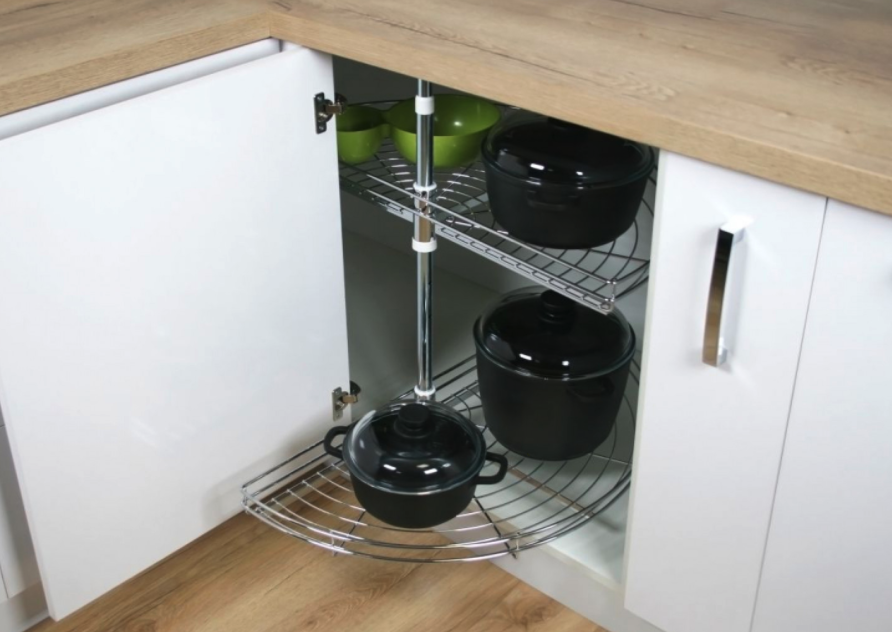 Určený pro rohové kuchyňské skříňky typu D13U. Vyrobeno z nerezu.