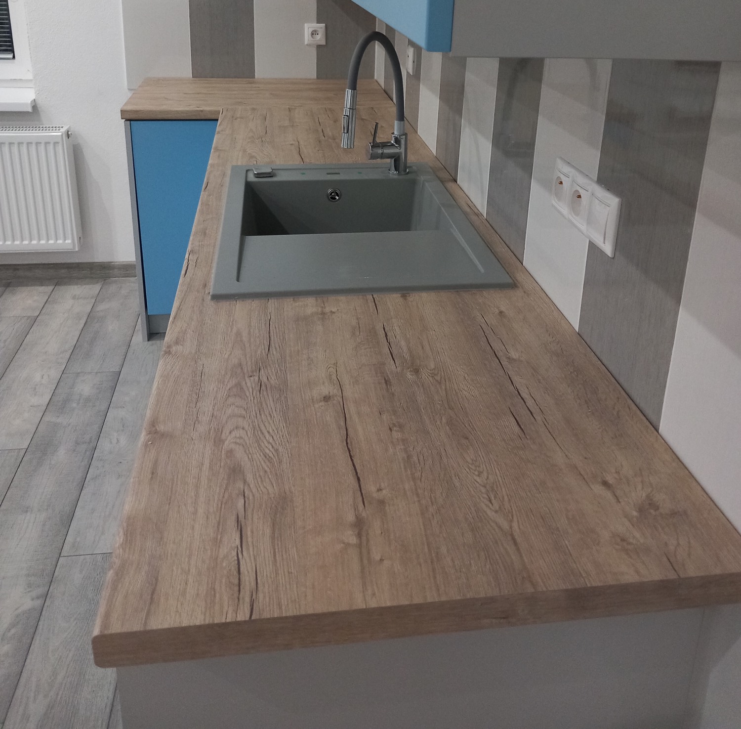 Prodáváme kvalitní pracovní desky v barvách renomovaných německých značek Kronospan a Egger. Desky jsou dostupné v tloušťkách 38 mm. Standardní hloubka všech kuchyňských desek je 600 mm. Dodáme i pracovní desky hluboké 1200 mm, které zúžíme na potřebný rozměr.