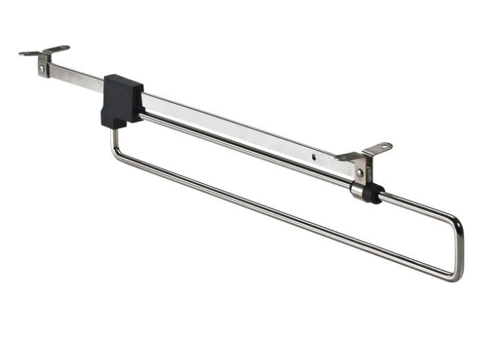 Výsuvný, chromovaný držák na utěrky se instaluje pod pracovní desku. Je praktický pro vyplnění prostoru v případě, kdy už není místo na kuchyňskou skříňku.