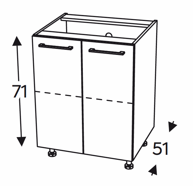 Výška nezahrnuje nožky (10 nebo 15 cm) a pracovní desku.