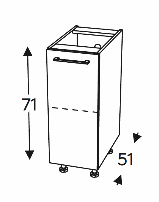 Výška nezahrnuje nožky (10 nebo 15 cm) a pracovní desku.