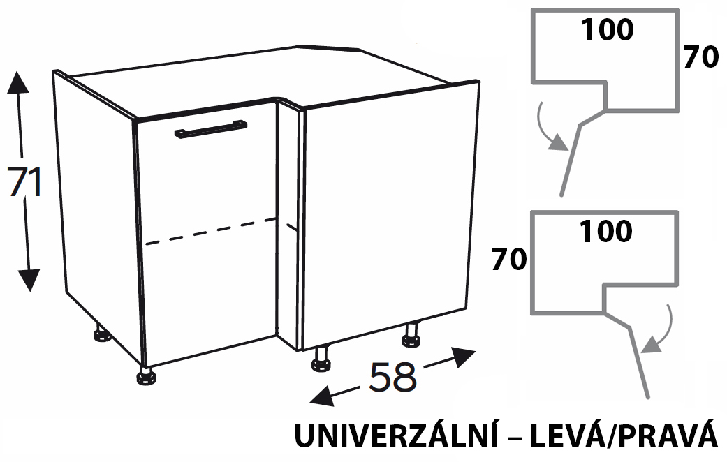 Výška nezahrnuje nožky (10 nebo 15 cm) a pracovní desku.
