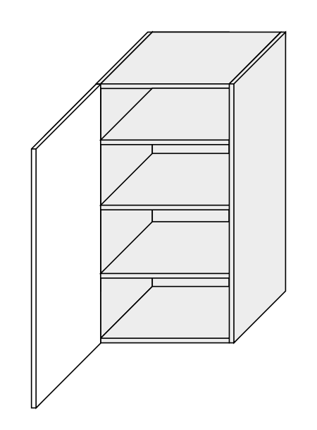 Korpusy skříněk jsou vyrobené z kvalitní LTD desky (18 mm, ABS 0,5 mm). Záda jsou z bílého sololitu a ve skříňkách jsou police s nosností 15 kg. Dvířka jsou opatřená kováním Hettich nebo Aventos (úchytky a kování jsou v ceně), na které se vztahuje doživotní záruka. Všechny skříňky disponují systémem tlumeného dovírání.